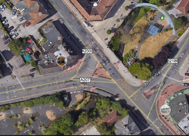 CRAYFORD ONE WAY SYSTEM AT THE BOTTOM OF CRAYFORD HIGH STREET