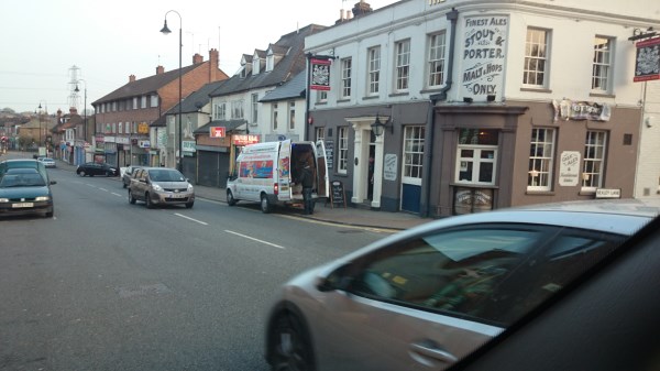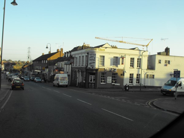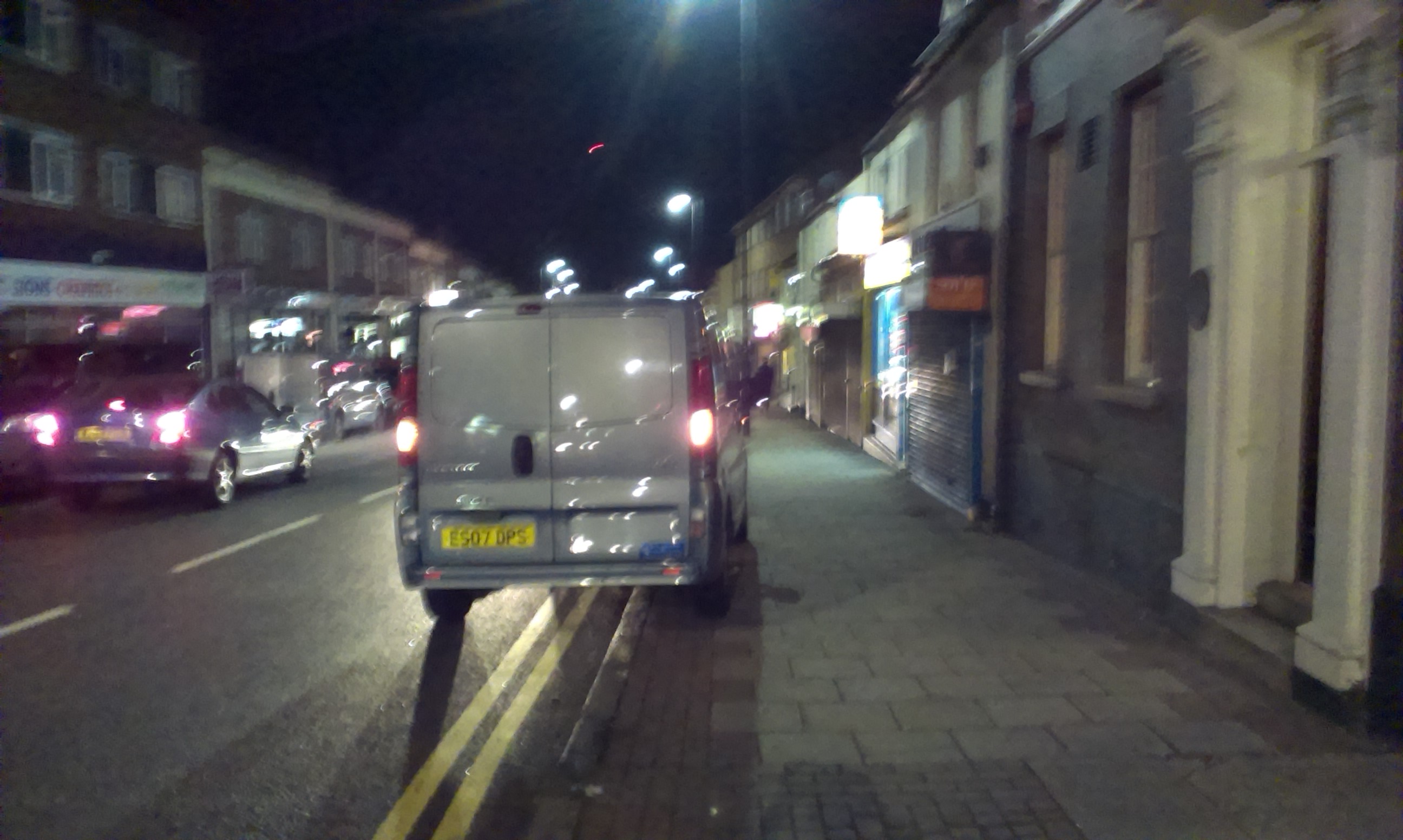 The vehicle shown below is parked for the purpose of unloading musical equipment for the night's entertainment in the pub. The pub, which is the Crayford Arms, in Crayford, I have played in many, many times over the last twenty years or so. It is situated on a corner of a junction in the high street, which is a busy main road. As can be seen, the pavement is very wide in this location and can easily facilitate pavement parking, especially for the purpose of loading and unloading. As can also be seen, such pavement parking in this location is not causing a problem to anyone using the pavement. Bearing in mind this is a busy through route for vehicles travelling towards Erith, it is by far less dangerous to park as shown than with the vehicle fully on the road. The vehicle is actually parked in the most sensible fashion given the circumstances, loading doors aligned with with the entrance to the pub. Optimum for the the given circumstances. Hazard lights are on and the vehicle is clearly visible to other vehicles and pedestrians alike. Parked in this manner, the vehicle is not obstructing the roadway or the pavement. Bearing in mind it is a busy road, pavement parking here gives just a little more clearance, and causes less obstruction to vehicles travelling up the hill.